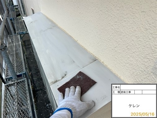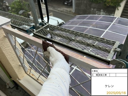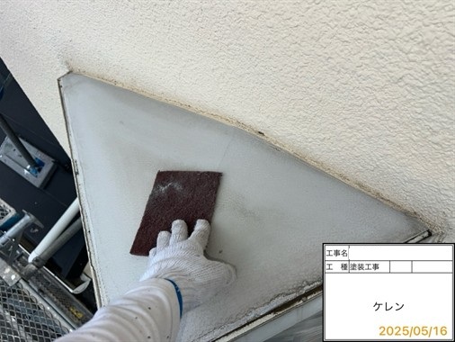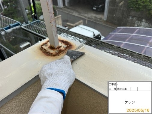 屋根に関しては前回のメンテナンスをカバー工法で行っておりましたので問題がないかを確認させていただきました。外壁に関しては経年劣化が進んでおりましたので防水性が切れておりました。雨樋の劣化が進んでおりました。また、バルコニー部の笠木に連結しているバルコニーのひさしの柱の鉄部のサビがひどくなっておりました。